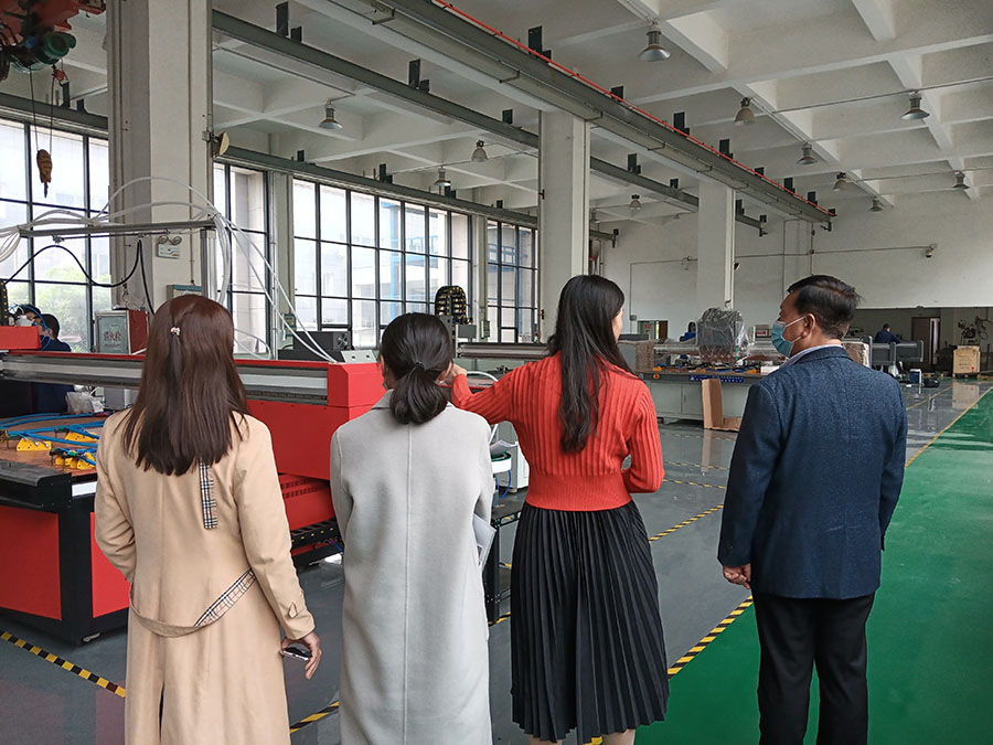 日出江花紅勝火,春來江水綠如藍(lán)。2021年4月13日,洛陽市高新區(qū)人大領(lǐng)導(dǎo)一行人來我廠考察指導(dǎo)工作,重點(diǎn)參觀了我司的鈑金自動(dòng)化設(shè)備:涂膠設(shè)備、工業(yè)平板噴墨打印設(shè)備、焊接自動(dòng)化設(shè)備、工業(yè)機(jī)器人等,對我司的產(chǎn)品給予了肯定。詳細(xì)了解了數(shù)控自動(dòng)化設(shè)備的的應(yīng)用領(lǐng)域和新產(chǎn)品的研發(fā)工作,給予了充分地肯定與認(rèn)可。